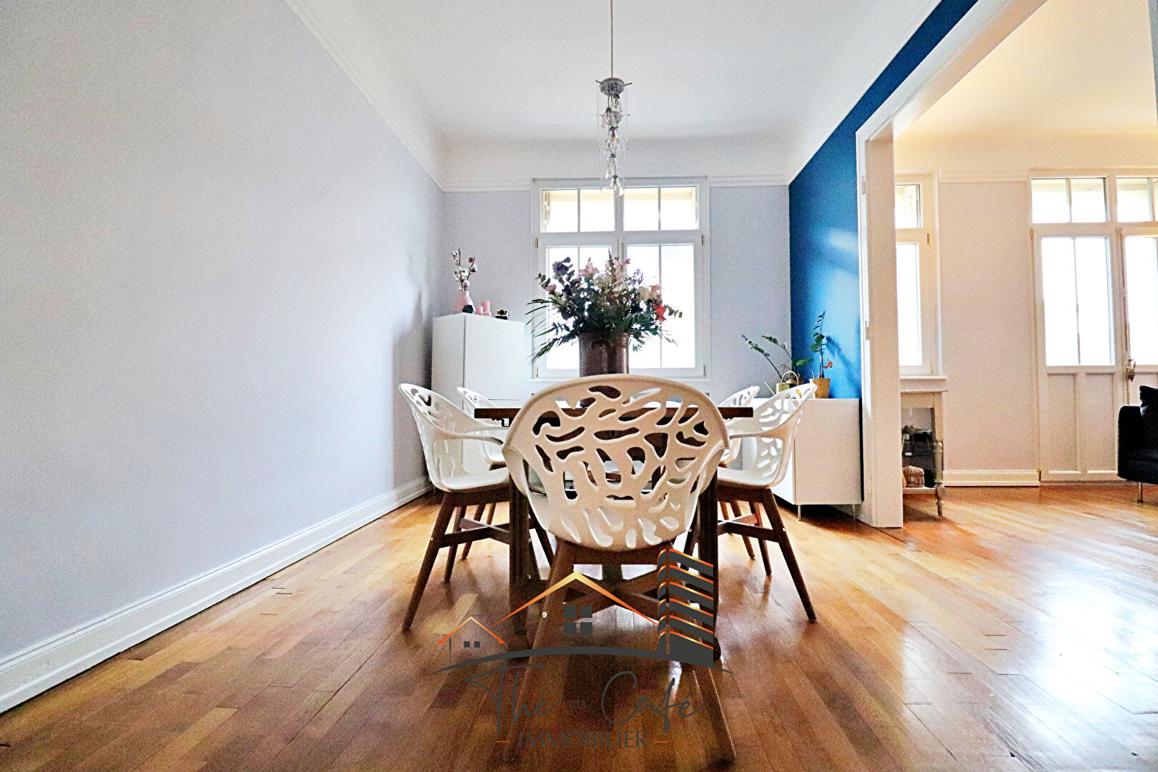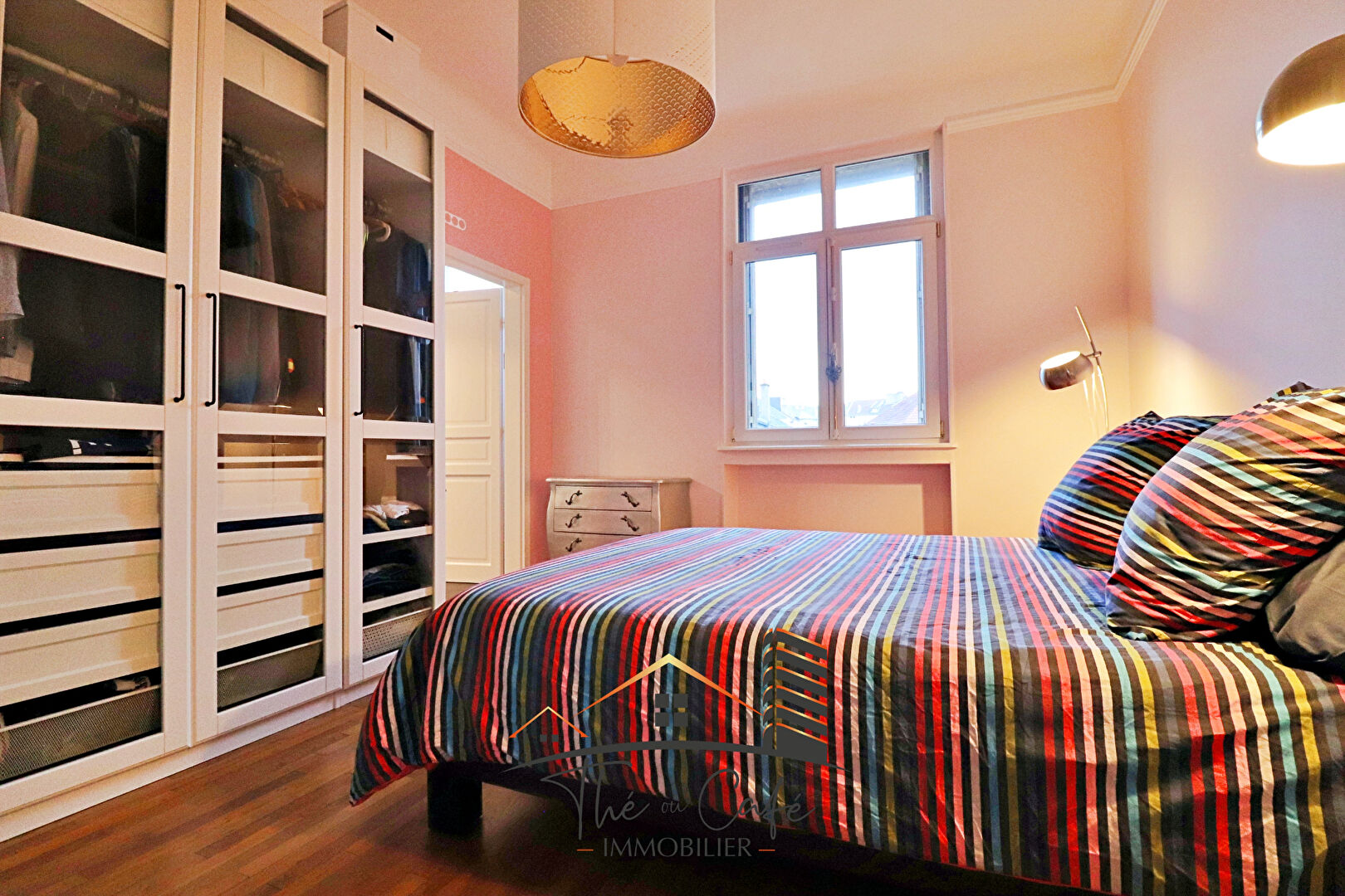 EXCLUSIVITÉ THE OU CAFE IMMOBILIER : THIONVILLE CHARLEMAGNE : Dans un secteur très résidentiel et recherché, notre agence a le plaisir de vous présenter ce superbe et spacieux F4 de près de 105 m2 habitables. Situé dans un immeuble cossu des années 30, en 2ème étage il offre : - Une belle entrée filante avec rangements - Un double séjour de près de 33 m2 avec hauts-plafonds et parquets ancien, avec balcon - Une très belle cuisine total look black avec un espace dinatoire intégré, et nombreux rangements, donnant sur un second balcon sans vis à vis, buanderie/cellier attenant - Une première chambre parentale avec salle de bains privative - Une seconde chambre très vaste - Seconde salle de douche. - Wc Ce bien, à la décoration raffinée, offre également une cave ainsi qu'un garage individuel fermé. Les avantages sont nombreux : outre l'absence de travaux à réaliser, le bien se situe à proximité de l'hyper centre de Thionville, avec les écoles à proximité immédiate, ainsi que la gare à 15 mn à pied. La rue est peu passante, et le bien est traversant. Intéressés par ce bien rare ? Contactez notre agence sans tarder ! DPE : D Uniquement chez Thé ou Café Immobilier 03 74 95 10 92 www.theoucafeimmobilier.com Copropriété de 15 lots - dont 5 lots habitation. (Pas de procédure en cours). Charges annuelles : 1395 euros.