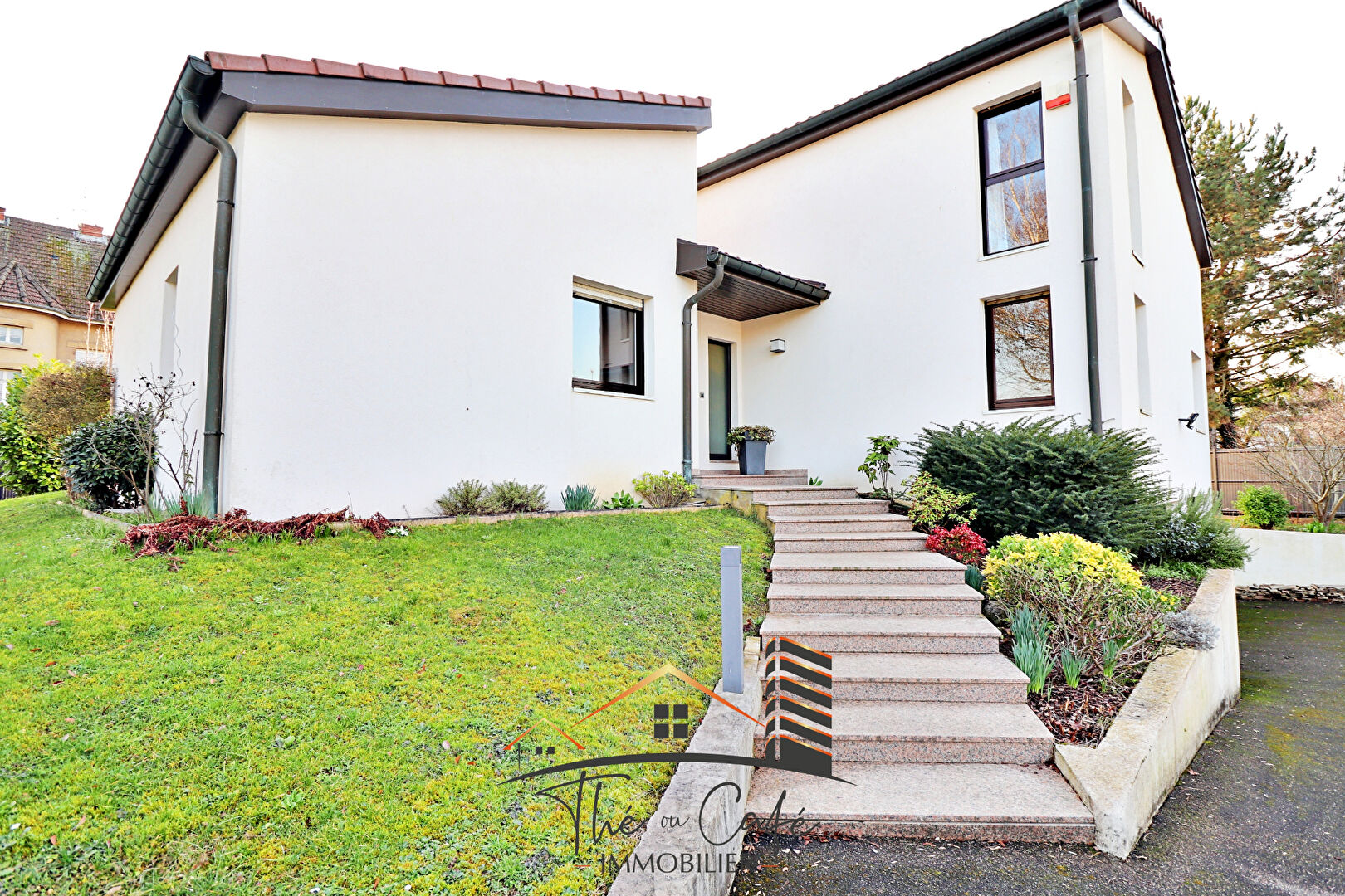 EXCLUSIVITÉ THÉ OU CAFÉ IMMOBILIER Thionville Quartier Saint-Pierre Située au coeur d'une impasse résidentielle particulièrement calme et recherchée, cette superbe maison individuelle séduit dès le premier regard par son architecture extérieure contemporaine, avant de révéler un intérieur chaleureux et parfaitement agencé. Développant 167 m² habitables, la maison s'organise comme suit : Au rez-de-chaussée Vaste hall d'entrée avec visiophone Double séjour lumineux de 42 m², agrémenté d'une cheminée, avec de larges baies vitrées ouvrant sur une terrasse plein sud Grande cuisine attenante, entièrement meublée et équipée (plus de 14 m²) Suite parentale avec accès terrasse et salle de douche privative Deux chambres supplémentaires et une salle de douche A l'étage Deux belles chambres de plus de 17 m² au sol Salle de bains En sous-sol Sous-sol complet comprenant une vaste salle de jeux / détente d'environ 35 m² Buanderie, cave, chaufferie Double garage avec portes motorisées Stationnements extérieurs supplémentaires Extérieurs Vous apprécierez un jardin clos, aménagé et parfaitement entretenu, idéal pour les moments de détente en famille. Prestations de qualité Alarme Visiophone Portail motorisé Accès sécurisé DPE : E Situation privilégiée : à proximité immédiate de Saint-Pierre Chanel, du centre-ville, des commerces et des axes routiers. Un bien idéal pour les frontaliers recherchant espace, confort et tranquillité, tout en restant au coeur de la ville. Uniquement chez Thé ou Café Immobilier www.theoucafeimmobilier.com