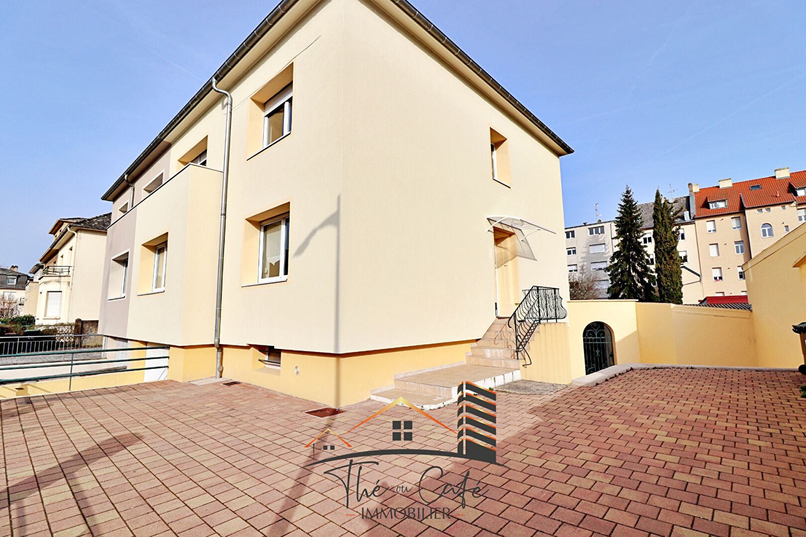 THE OU CAFE IMMOBILIER VOUS PROPOSE A LA VENTE THIONVILLE : Quartier Saint-Pierre Située dans une agréable rue à sens unique, au calme, et à deux pas du centre-ville et de la gare de Thionville, cette belle maison de ville des années 50, entièrement rénovée, saura séduire les familles en quête de confort et de praticité. Développant une surface habitable de 175 m², la maison offre de superbes volumes. Le rez-de-chaussée se compose d'un vaste espace de vie de plus de 56 m², comprenant séjour, salle à manger et cuisine américaine entièrement équipée. Cet espace ouvert bénéficie d'une luminosité traversante très agréable. La cuisine donne accès à une terrasse suspendue de 15 m², idéale pour les repas en extérieur, avec un accès en contrebas à un jardin clos, parfait pour les enfants. Au premier étage, un palier ouvert de 20 m² permet d'aménager un espace détente ou bureau. Vous y trouverez également une salle de douche, une salle de bains, une chambre de 16 m² avec placard, ainsi qu'une chambre parentale de plus de 17 m² avec placard et balcon. Les combles entièrement aménagés sont dédiés à l'espace enfants et proposent trois chambres avec vélux, une salle de douche, ainsi qu'un bureau au dernier niveau. Un sous-sol complet vient compléter ce bien, offrant : un garage 1 véhicule, une vaste buanderie, un cellier, une cave. Travaux récents réalisés : Toiture entièrement refaite Chaudière remplacée Isolation extérieure Façades et extérieurs rénovés Grâce à sa situation géographique idéale (proximité immédiate des écoles, du centre-ville, de la gare et de l'accès A31), ses beaux volumes et sa très bonne isolation énergétique, cette maison est parfaitement adaptée à une vie de famille confortable. DPE : C Contactez-nous sans tarder pour organiser une visite. www.theoucafeimmobilier.com